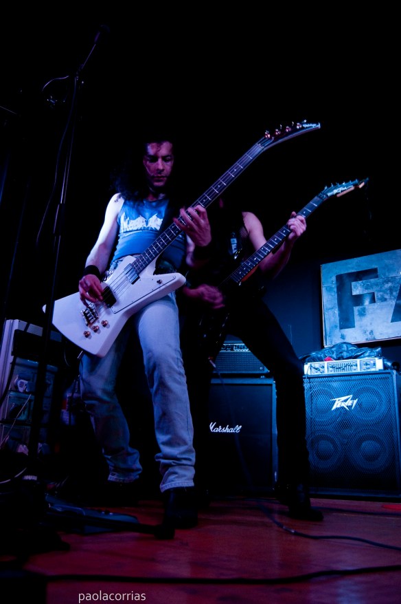 L’iniziale odore di pelle di giubbotto, birra e un vago sentore di profumo femminile inizia a mutare in quello di mandria bovina. Sposti gli occhi dal trash furioso che imperversa, dall’orgoglioso piede sull’ampli di Andrea, il chitarrista che prima era bassista, e vedi a mezzo metro di distanza l’encierro di Pamplona.