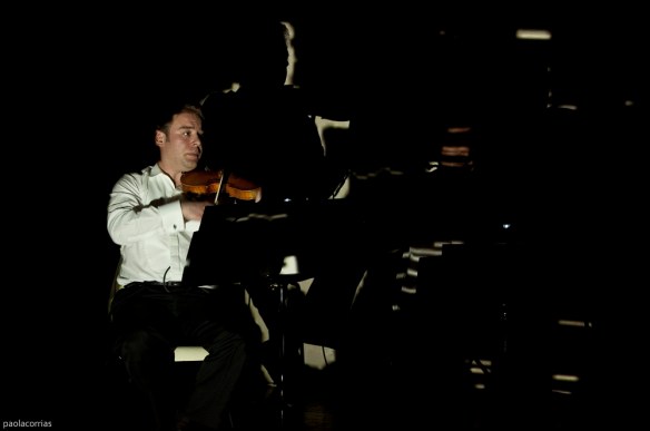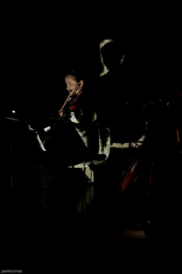 Movimenti superficiali, battiti interni, strascichii, poliritmia. Il fluire sonoro di corde e crini è contaminato dal vivere stesso dei musicisti. Non solo quello che producono, ma quello che sentono, affiora sulla superficie acustica diretta allo spettatore. E’ un bombardamento che si fa sempre più insistente.