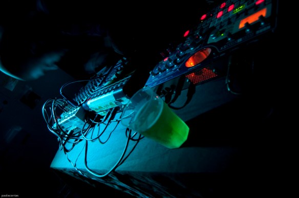 E inzio a pensare che tutti, ma proprio tutti i producer, quando toccano i potenziometri, poi staccano le dita come avessero toccato la griglia di un fornello bollente. Avete notato? Sfiora e salta via, sfiora e salta via. Inizierei a scrivere un saggio sulle differenze dei vari gesti, ma interviene Arrogalla per un saluto, e abbandono l’impresa.
