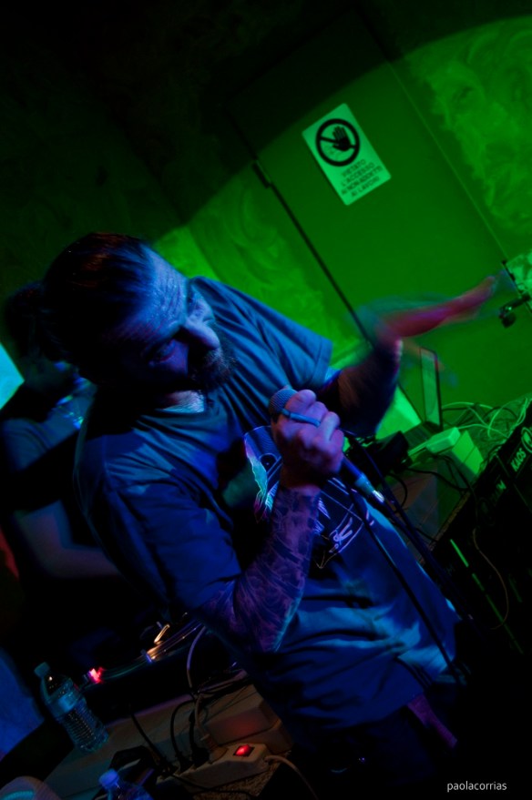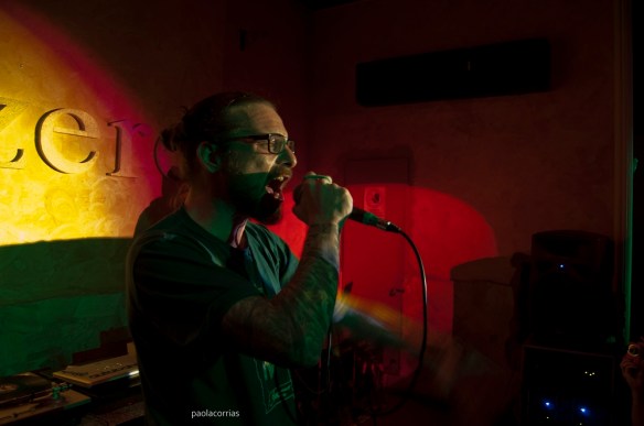 Sensorialmente in osmosi dalla prima all’ultima fila, ci ride su, gioca con la sua stessa carriera, osannata ripetutamente, dai Radical Stuff a quelle pietre miliari dei suoi album solisti, dai Melma & Merda sino alla collaborazione con Gopher di Neo Ex, “L’anello mancante“, per unire tutti i puntini delle varie collaborazioni sparse per la scena ottenendo la sagoma barbuta e tatuata del veterano hardcore.