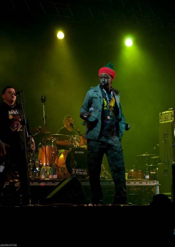 L’impennata caraibica prende possesso quando, a poco alla volta, entrano in scena i Train To Roots. Ma non è un percorso leggero. Nell’intro, il gruppo, sfoltito dei tre vocalist, inscena un reggae teatrale (quasi spaghetti western) arroccato su incastroni di strumenti a corda, lanciato su sapienti tastieracce eighties. Notevole. Quando Bujumannu, Paolinho e Rootsman I si fanno cavo e microfono, e i canoni riprendono forma, il pubblico sembra gradire maggiormente, coccolato dai loro classici.