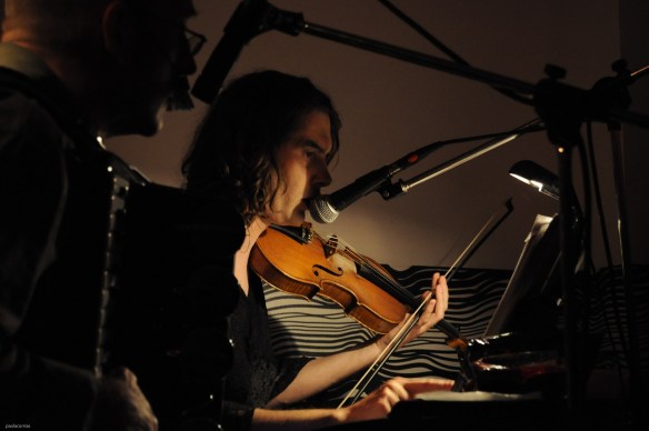 Presentataci da Laura Mura, adobbata tra ricamatissimi abiti da sera neri e baffi turchesi finti, la strana coppia si accomoda in un angolo e inizia uno spettacolo. E non si tratta semplicemente di un concerto, ma di un vero e proprio estratto dall’immenso, sterminato repertoire della bestia londinese.